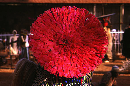 une coiffure de plumes rouges...